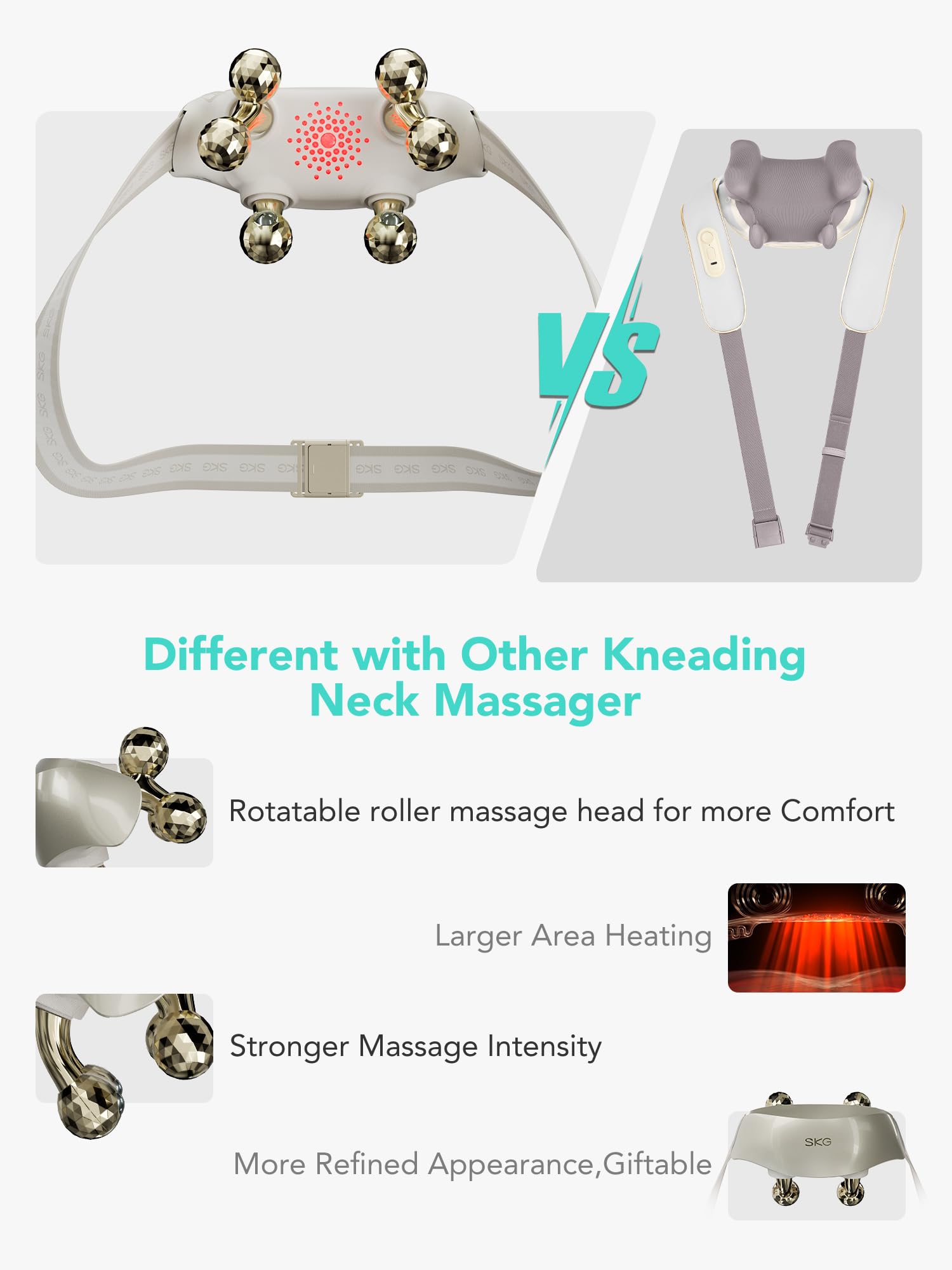 - Large Massage Coverage - SKG H7 Ultra uses a micro-swinging elastic massage head that fits the entire shoulder and neck in three dimensions, making it suitable even for larger neck sizes